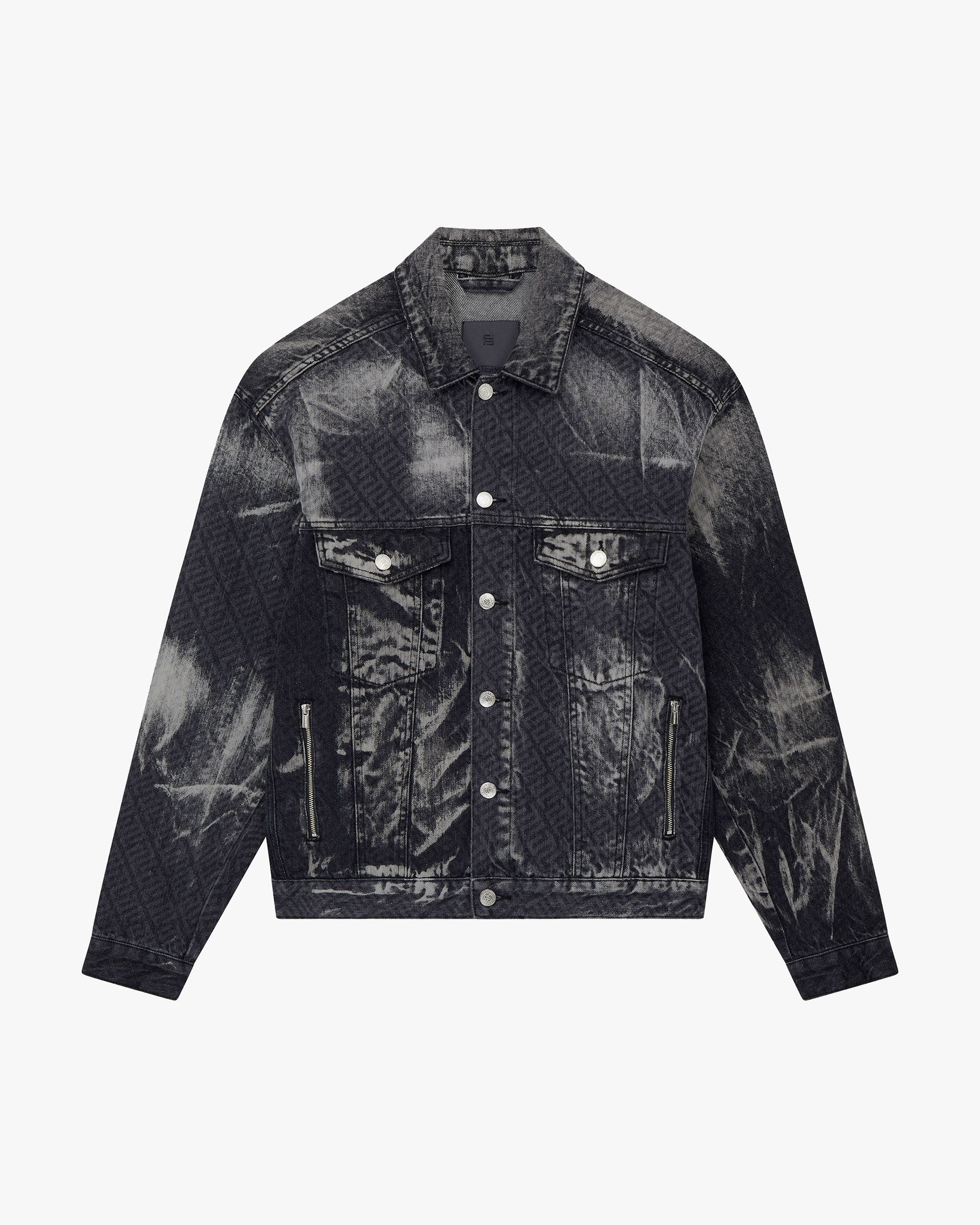 Washed and distressed monogram denim
