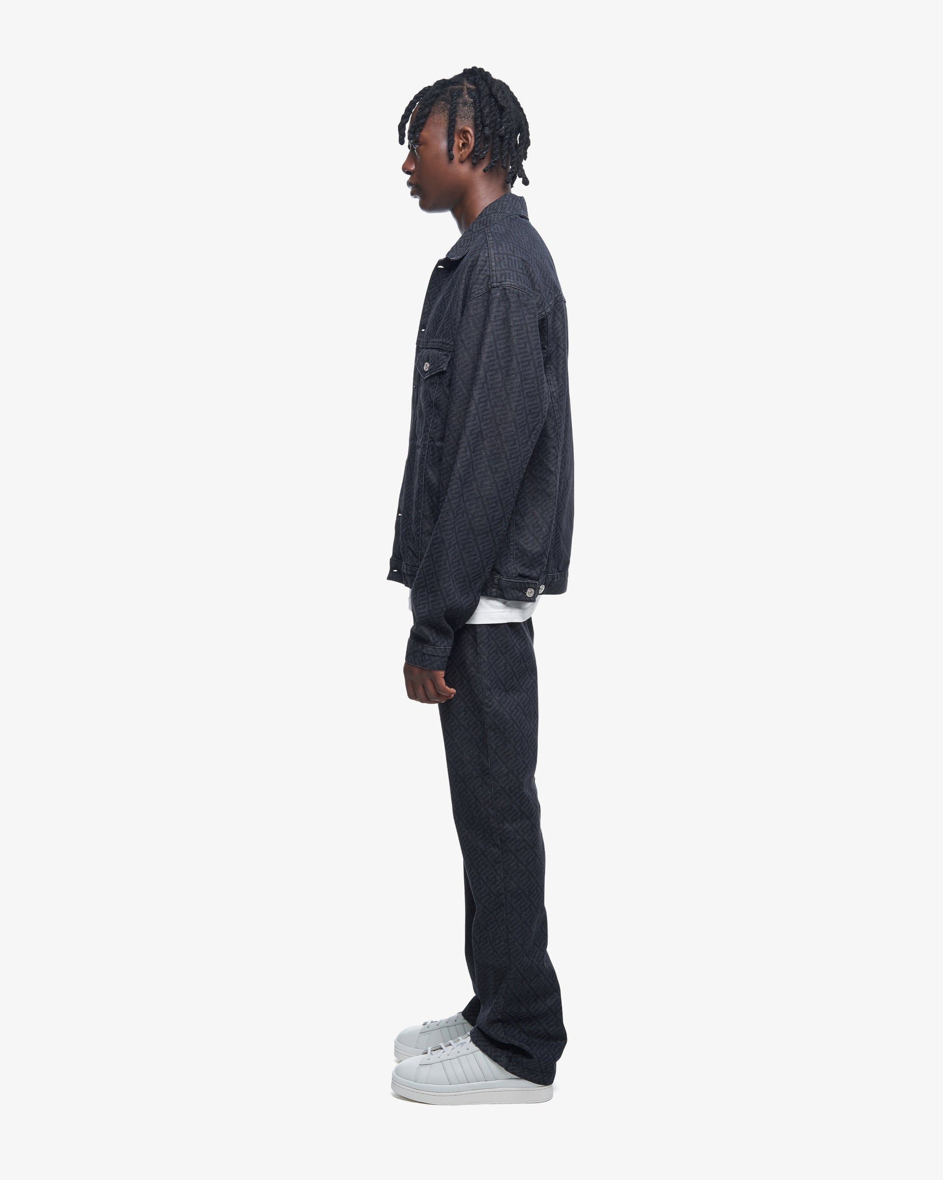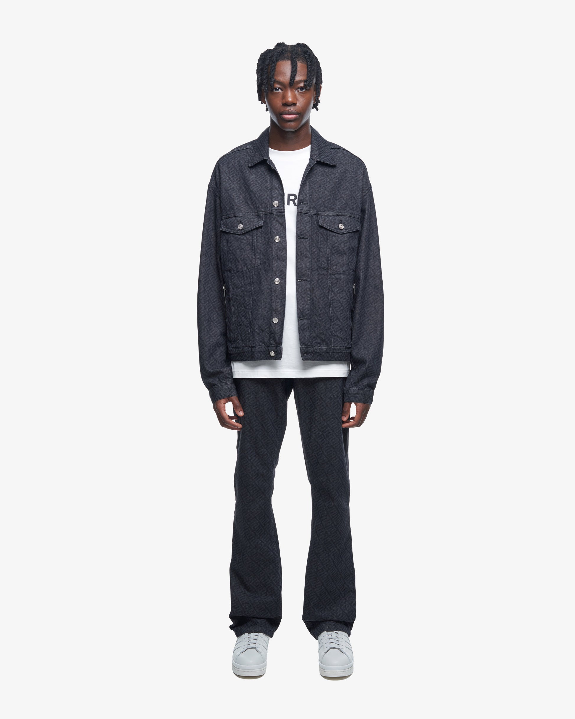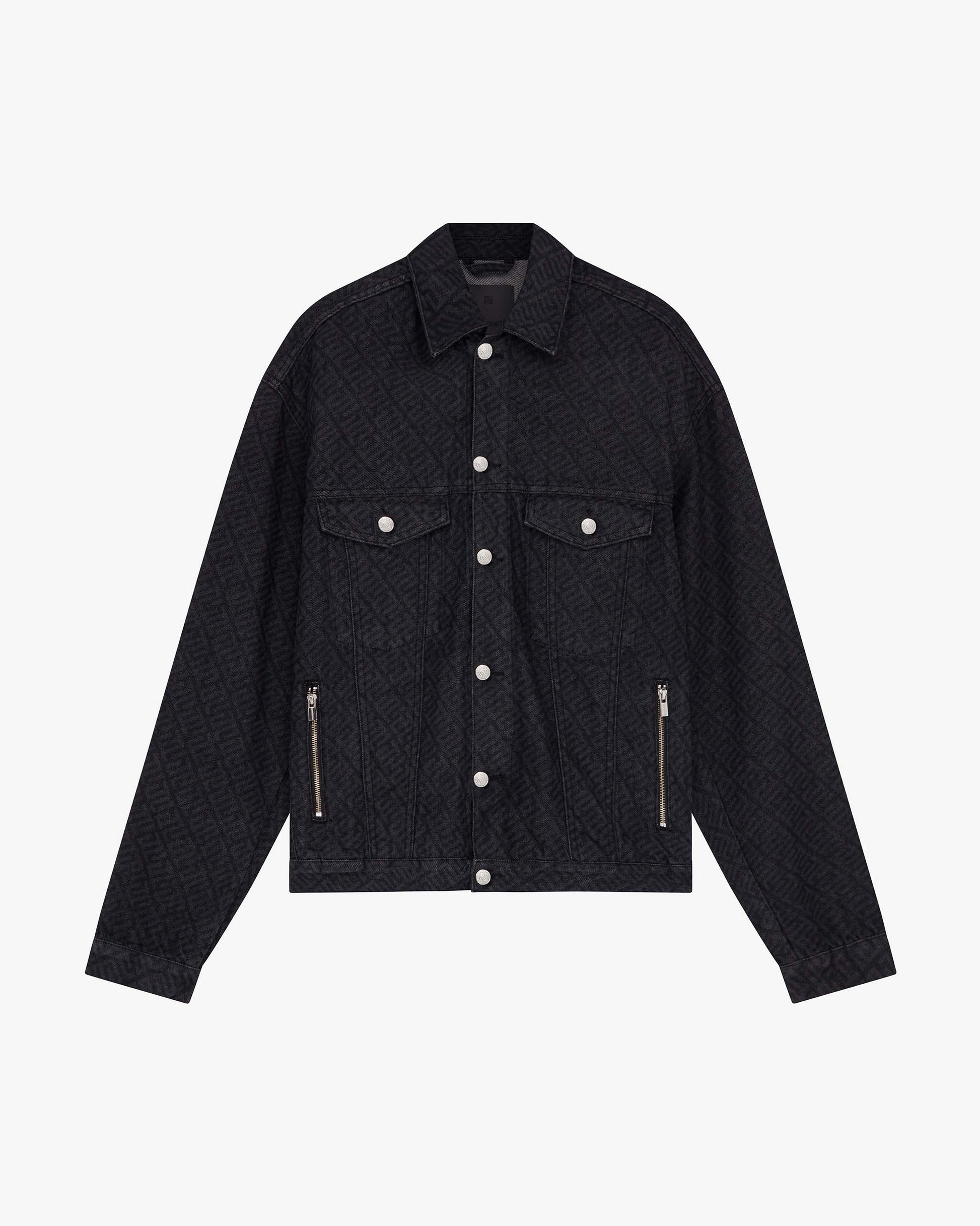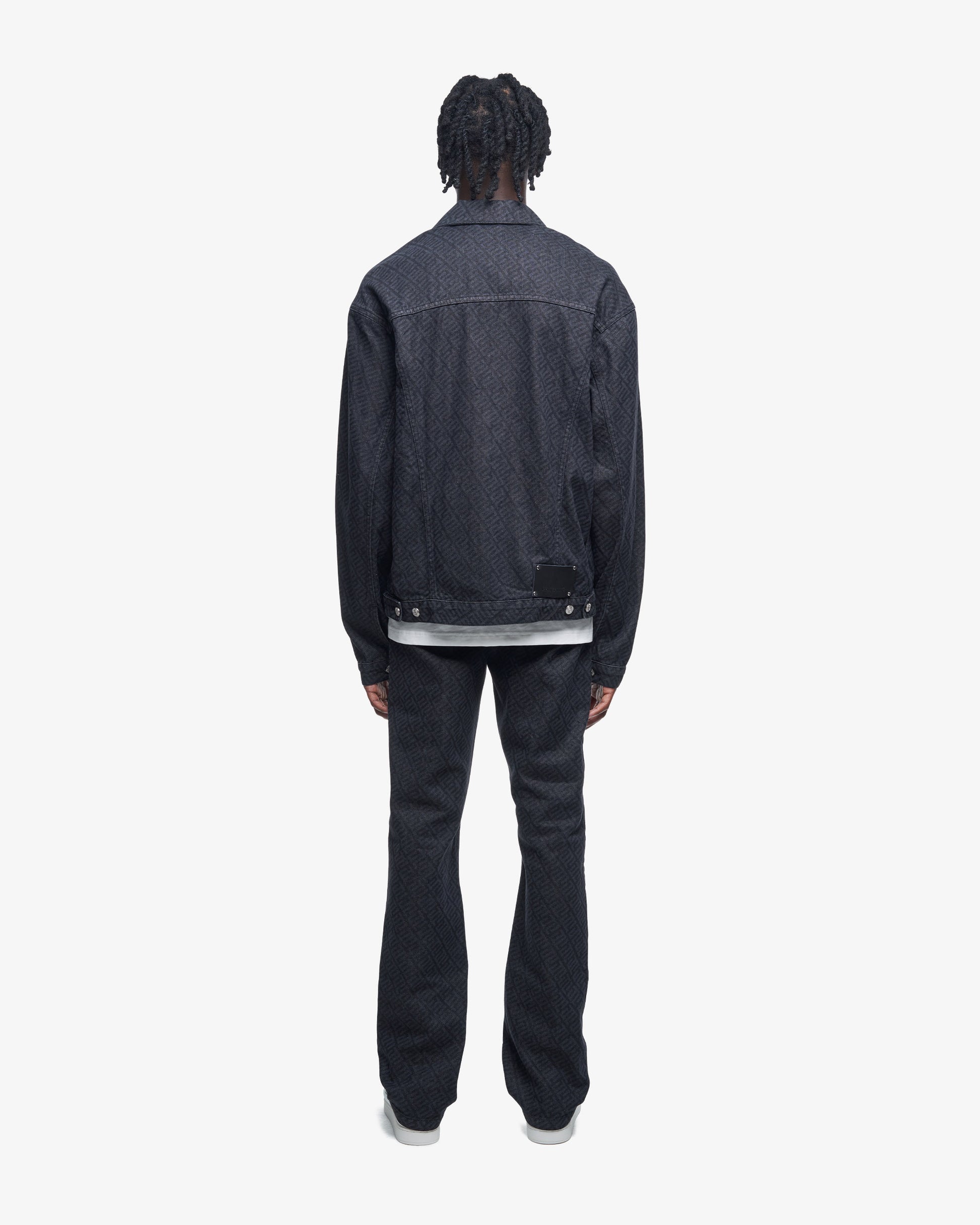 Oversized laser etched monogram denim jacket