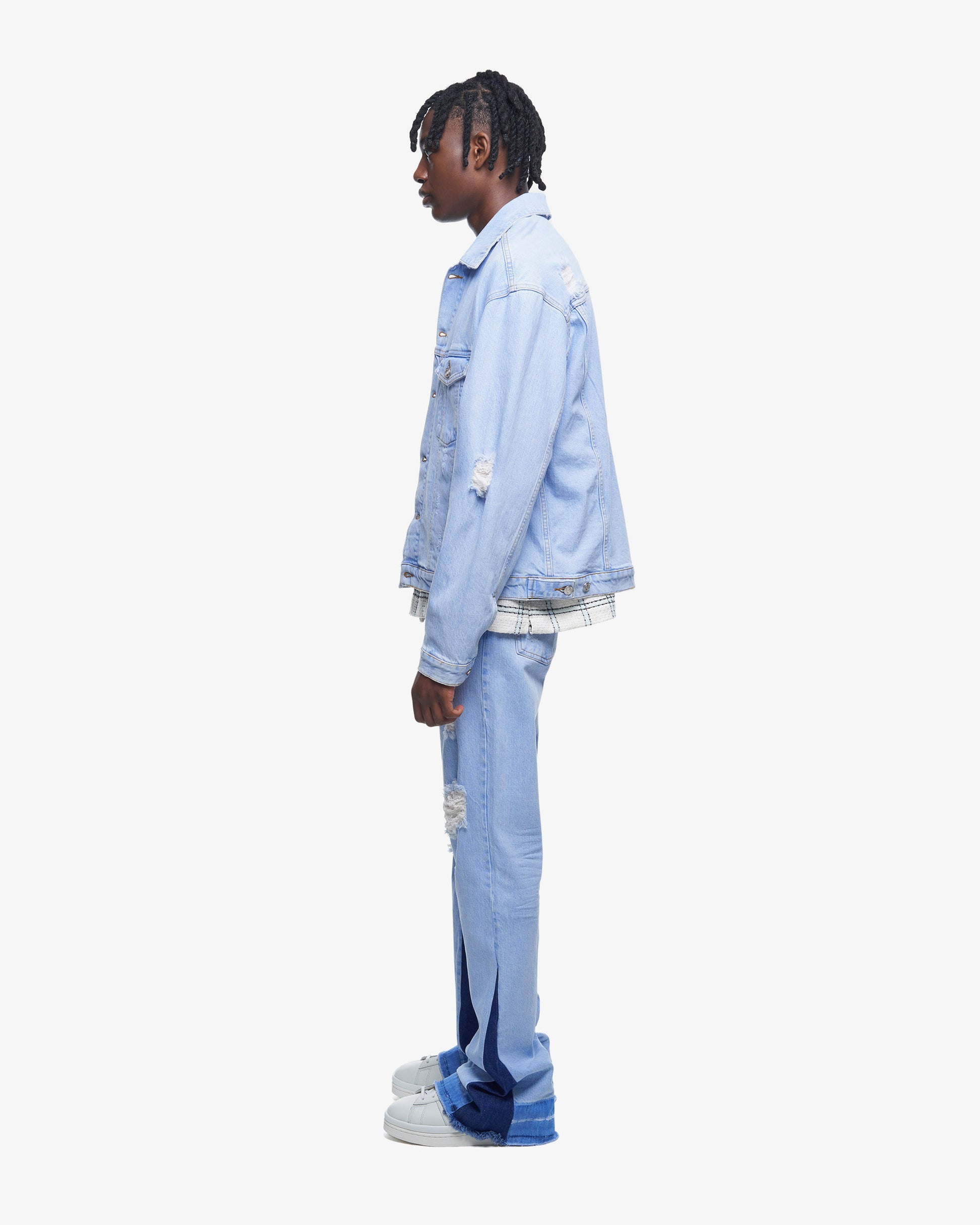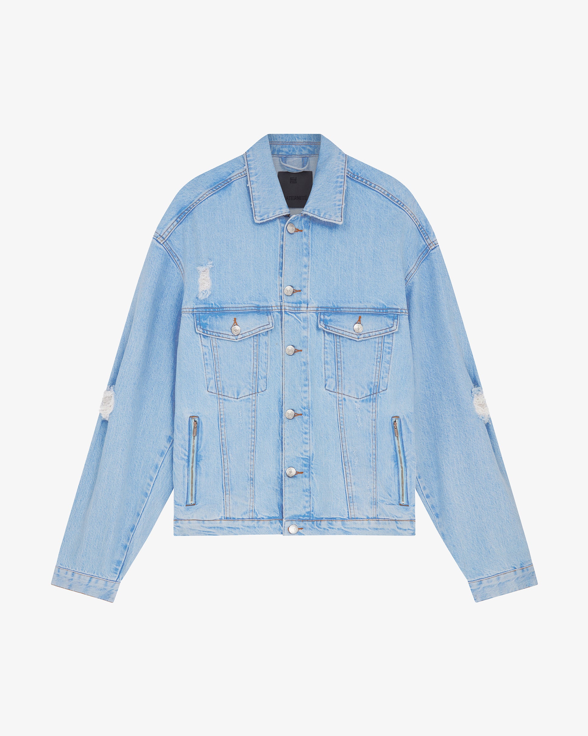 Oversized washed and distressed denim jacket